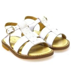Sandalia romana de piel con incrustaciones de cristalitos en el empeine. Cierre de hebilla ajustable alrededor del tobillo. Forros y planta de piel. Suela de goma flexible y antideslizante.