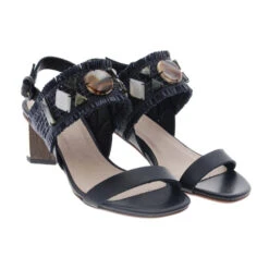 Piel napa negro. Consejos de talla: Calzan el número. Una sandalia muy estilosa para diario, con un toque étnico gracias a los flecos y a las piezas del empeine que llevaremos a la oficina con un look más sofisticado o con un look boho con un vestido largo.