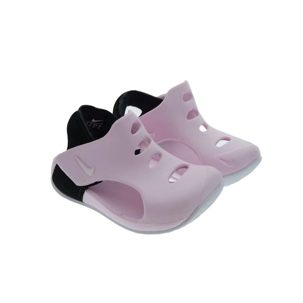 Sandalias de piscina cerradas para niño de NIKE con puntera cerrada y tira en el talón. Lleva cierre de velcro con el logo de la marca. Suela de goma antideslizante.