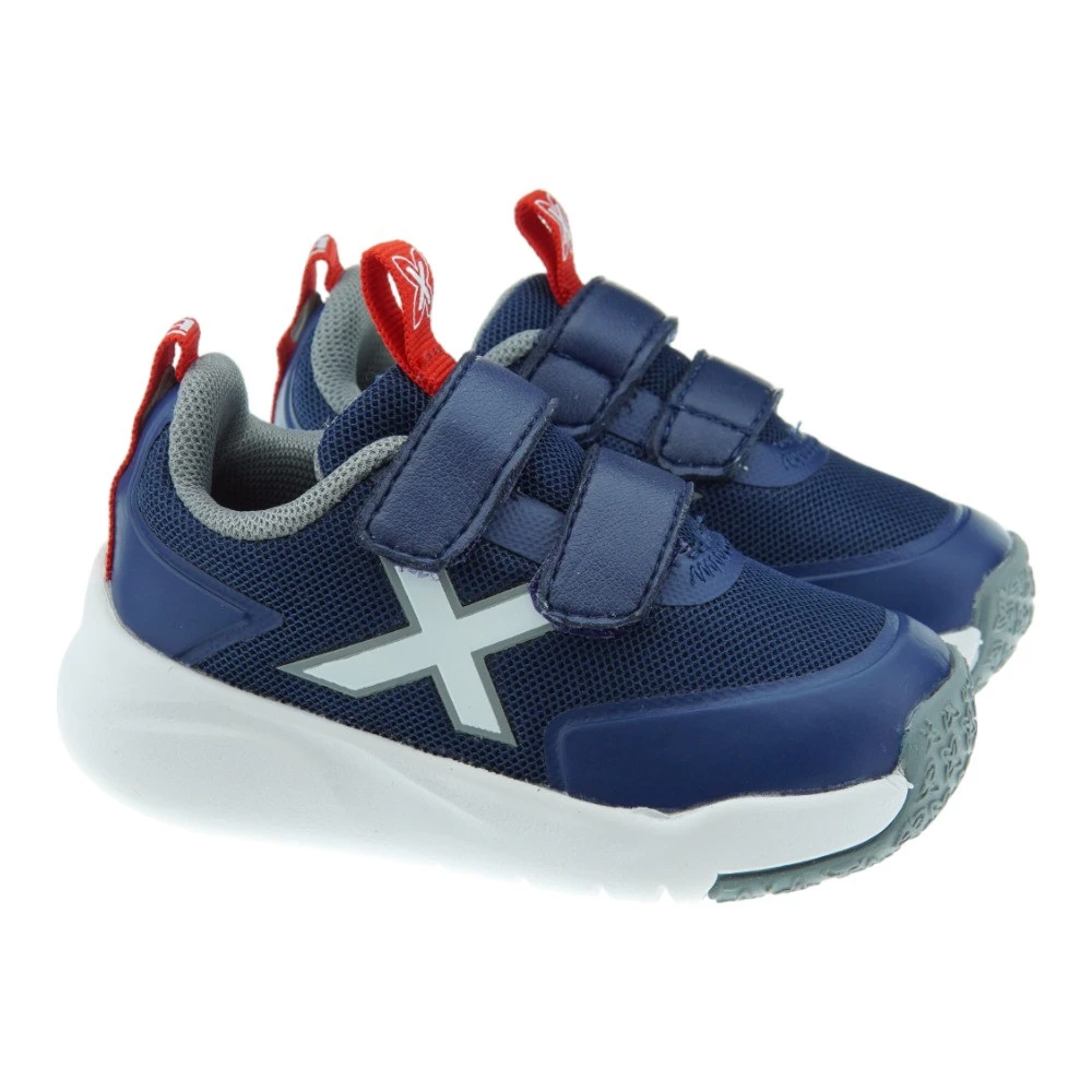 Un básico que no puede faltar en el vestuario de los peques, son las deportivas con doble velcro de la marca MUNICH. Llevan de adorno el logo de la marca en los laterales y en la lengüeta y el interior es de algodón. Las suelas son antideslizantes de goma Eva.