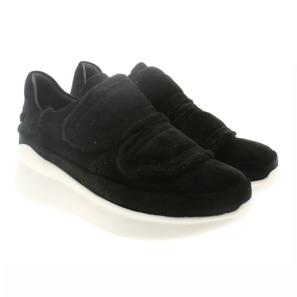 Piel de nobuck negro. Consejos de talla: Calzan el número. Este invierno súmate a la moda deportiva con estas zapatillas insipiradas en las botas australianas con detalles de pelo.