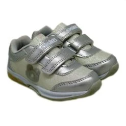 Zapatilla para niña metalizada con luces de CONGUITOS. Cierre de velcro. Interior de algodón. Suela de goma antideslizante.