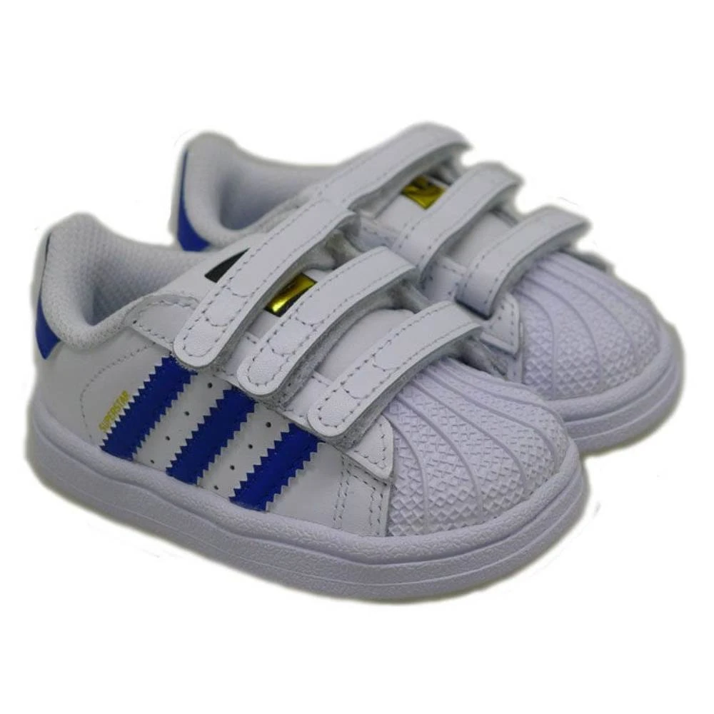 Un icono de ADIDAS son sus zapatillas Superstar con la puntera reforzada de goma. Este modelo se caracteriza por llevar las tres bandas en los laterales y el cierre es de velcro para mayor comodidad. El interior es de algodón antimicrobiano y la suela de goma antideslizante.