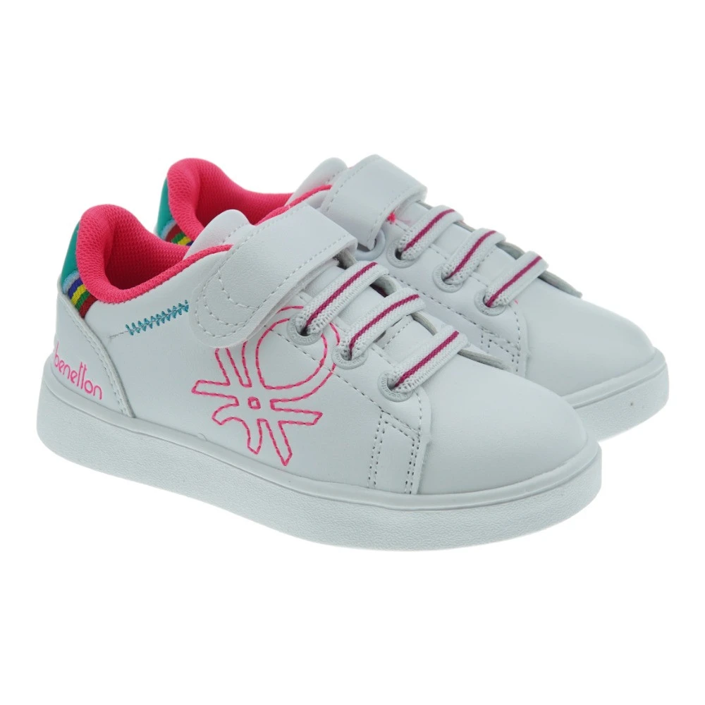 Para llevar al colegio con el chándal o con un tejano, BENETTON ha lanzado estas zapatillas deportivas con el logo de la marca bordado en los laterales. Para mayor comodidad, llevan cierre de un velcro y cordones elásticos. El interior es de algodón y la suela de goma antideslizante.