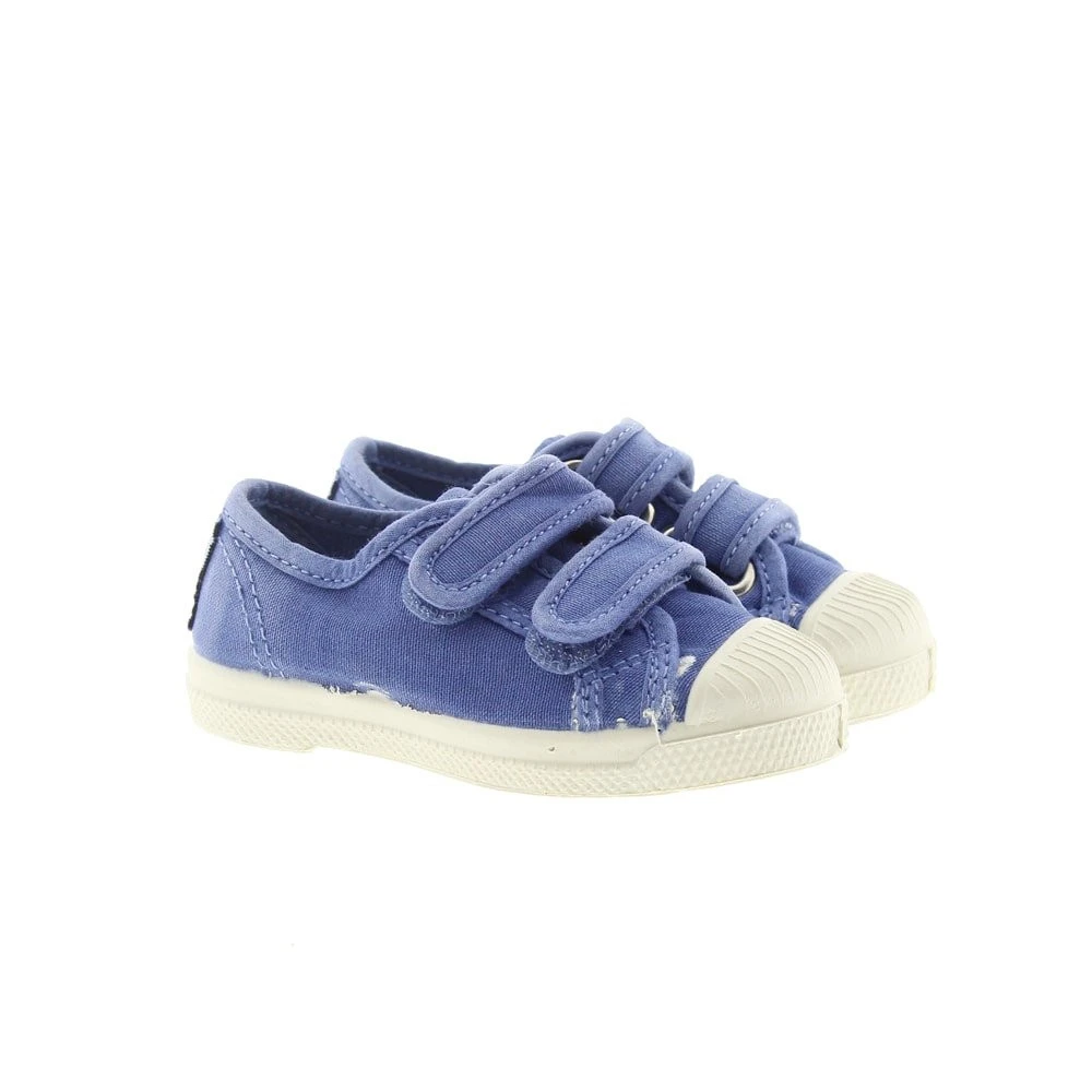 Disponible en diferentes colores, algodón celeste y algodón gris. Consejos de talla: Aconsejable elegir una talla más, porque al lavarlas encajen. Estas zapatillas con velcro son un básico para los niños en cuanto llega el buen tiempo. Las podrán llevar tanto para bajar al parque como para vestir con bermudas. NATURAL WORLD fabrica zapatillas de lona ecológicas ayudando al medio ambiente. Los materiales utilizados son algodón 100% de España y caucho natural, fabricadas mediante un Sistema de Vulcanizado, que consiste en unir el algodón con el caucho mediante altas temperaturas, sin utilizar productos químicos ni adhesivos.