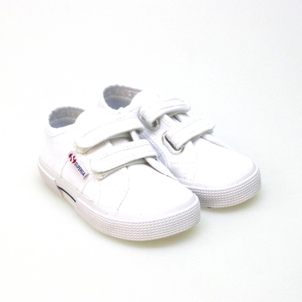 Zapatilla lona de la marca italiana SUPERGA, interior y exterior de algodón. Cierre de velcro Pespuntes decorativos. Suela de caucho con textura.