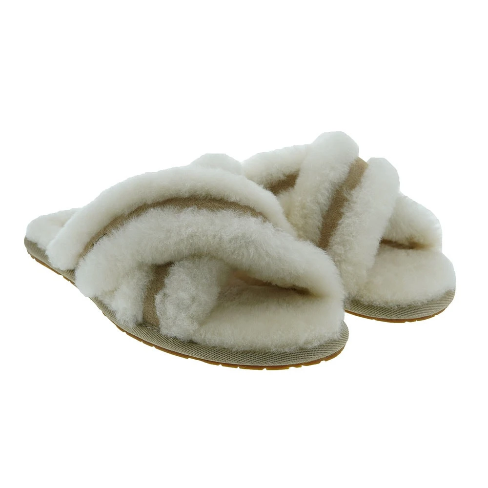 Abriga tus pies en casa con estilo y comodidad con estas zapatillas de pala cruzada de UGG elaboradas en piel de oveja natural y ante. La piel de oveja mantiene la temperatura y el pie seco. Las suelas son de goma moldeada para que la pisada sea más cómoda.
