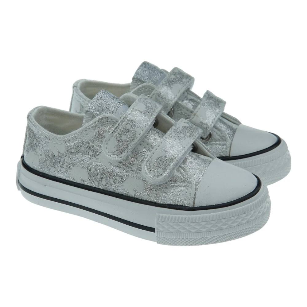 Color plata. Consejos de talla: Calzan el número. Estas zapatillas las llevarán las niñas más pequeñas este verano con prendas de sport para ir a la guardería y bajar al parque.