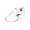 Zapato deportivo ortopédico de MENDIVIL en piel para niña con detalle de glitter en el lateral y con cierre de velcro. Horma rectaforma con capacidad interior para acoplar plantillas y contrafuerte especial estabilizador. Forros y planta en algodón. Piso de goma antideslizante.