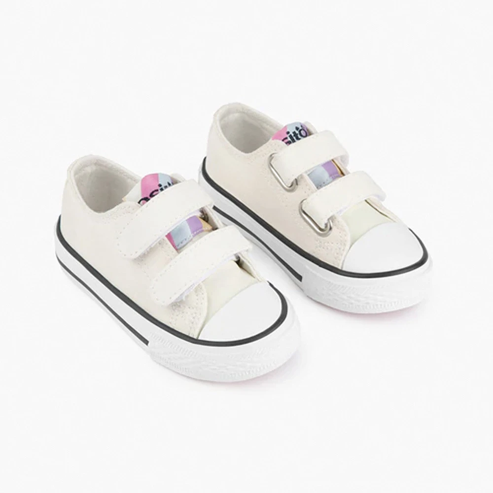 Algodón multicolor. Consejos de talla: Calzan el número. Se recomiendan guardas en la caja después de su uso y que no estén expuestas a la luz. A las niñas le encantarán ya que según el momento estarán blancas o de color. Combínalas con prendas de sport para jugar y bajar al parque.