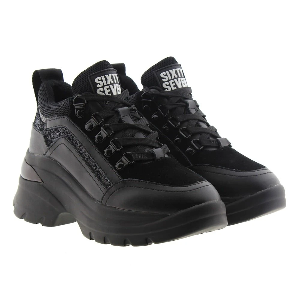 Este invierno las zapatillas con suela ancha o plataforma son la gran tendencia del momento. Este diseño de SIXTYSEVEN lleva cierre de cordón y el logo de la marca en la lengüeta, además de llevar unas franjas de color en los laterales.