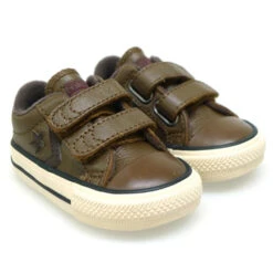 Zapato deportivo en piel de la marca CONVERSE. Cierre de velcro. Logo de la firma en los laterales y talón. Puntera de goma. Forros y plantilla de algodón. Suela de goma antideslizante.