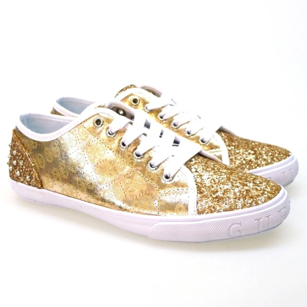 Piel metalizada oro rosa, con glitter al tono. Consejos de talla: Calzan el número. Un zapato deportivo para combinar con tejanos y pitillos, sin perder el estilo. El toque original se los da la purpurina que cubre parte de la zapatilla.