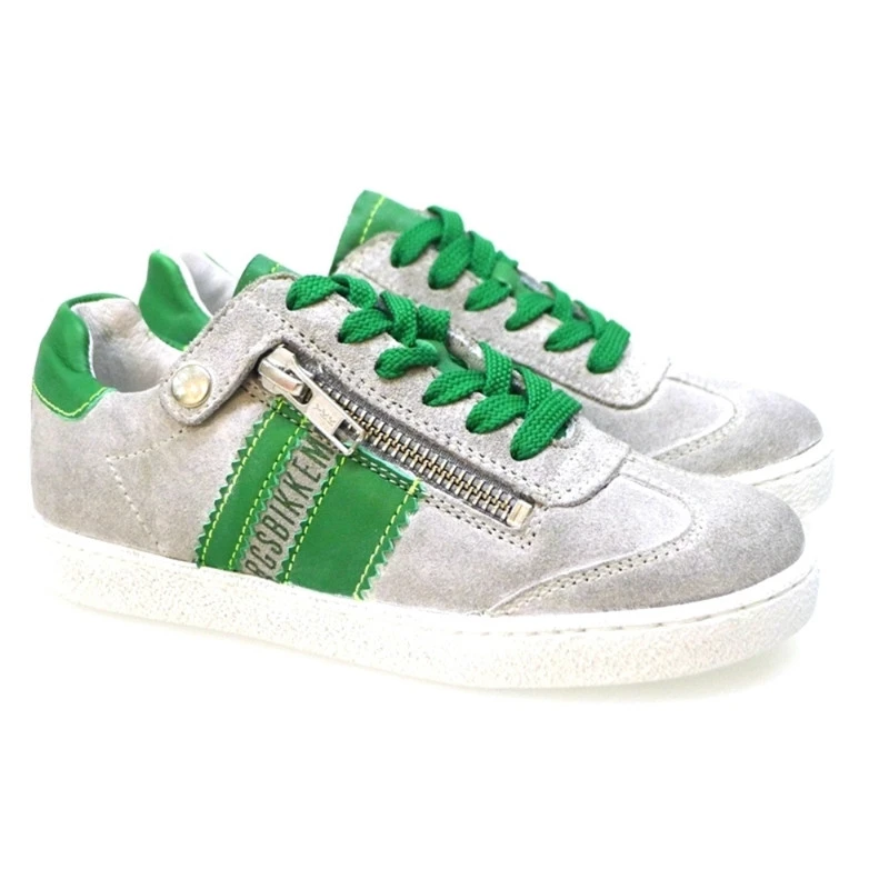 Piel nobuck gris con logo y cordones en verde. Consejos de talla: Calzan amplio, con lo que se recomienda elegir la misma talla o una menos. Zapato deportivo muy práctico por la cremallera a la hora de poner y quitar, podrás combinarlo tanto con conjuntos sport como con vaqueros o bermudas.