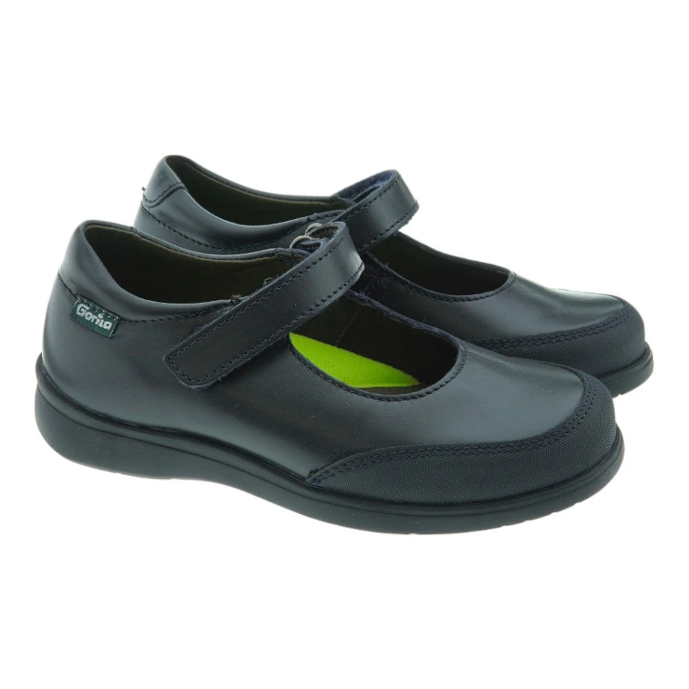 Equipa a tu hija con los mejores zapatos colegiales para el uniforme. GORILA cuenta esta temporada con estas merceditas fabricadas en piel con la puntera reforzada para mayor resistencia. El interior es de piel y la plantilla anatómica extraible, lo que las hace tan cómodos y confortables. Las suelas son de goma antideslizante.