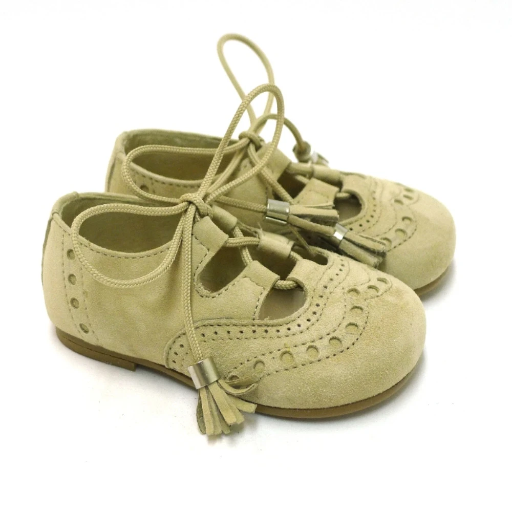 Un zapato gales es un clásico para bebé, pero este diseño tiene un toque renovado gracias a la piel de nobuck y a los colores vivos. CLARYS nos ofrece estos zapatitos para sus primeros pasos. El cierre es de cordón con campanillas. El interior es de piel transpirable y la suela antideslizante.