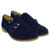 Zapato de comunión niño de OCA LOCA en piel de nobuck con cierres de dos hebillas en el empeine. Forros y planta de piel. Suela de goma antideslizante.