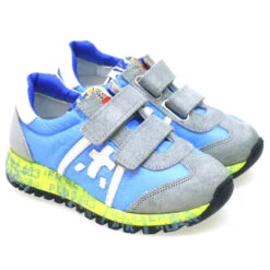 Sneakers para niño en piel de nobuck y nylon de PREMIATA. Cierres de velcro con logo de la firma en los laterales y lengüeta. Forros y planta de algodón. Suela goma Eva antideslizante.